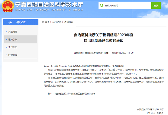 近日,宁夏回族自治区科学技术厅发布了《自治区科技厅关于批复组建2023年度自治区创新联合体的通知》,正式批复天地奔牛牵头组建“宁夏智能刮板输送装备创新联合体”。