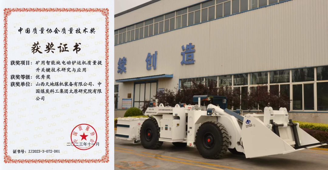 继山西煤机科研项目《EML300Y(340A)窄型连续采煤机的研制》获“2020年度中国质量技术奖”优秀奖,近日,《千万吨级综采工作面自移式设备列车研制与应用》和《矿用智能纯电动铲运机质量提升关键技术研究及应用》再次分获“2023年度中国质量技术奖”二等奖和优秀奖。