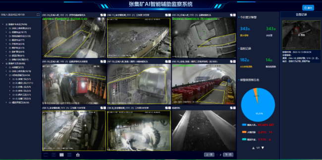 近日,重庆研究院在淮河能源控股集团谢桥、张集煤矿部署AI智能辅助监察系统。该系统接入300路视频分析,部署24种场景识别算法,识别准确率达95%以上,且全国首创自动抓拍并匹配井下违章作业人员。
