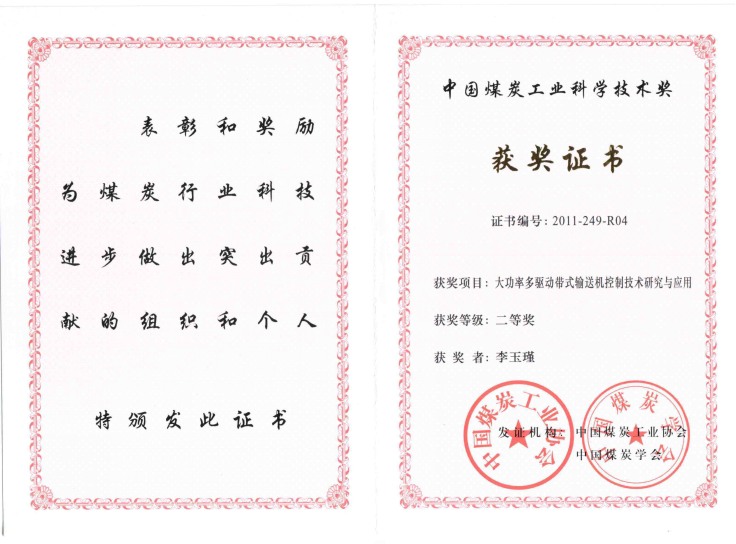 主持完成的科研项目“矿井提升系统安全运行核心技术研发”、“带式输送机动力学研究与限制振动应用技术”经煤炭工业协会科技发展部组织的国内知名专家委员会鉴定,达到“国际领先”水平。