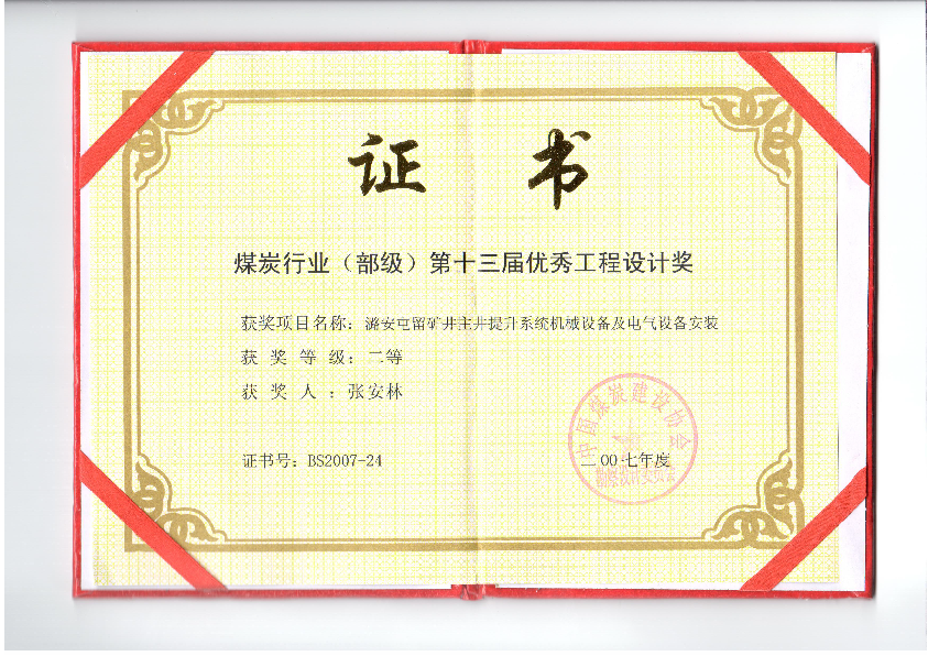 参与完成的科研项目“矿井提升系统安全运行核心技术研发”、“带式输送机动力学研究与限制振动应用技术”经煤炭工业协会科技发展部组织的国内知名专家委员会鉴定,达到“国际领先”水平。