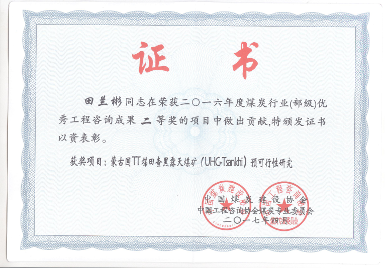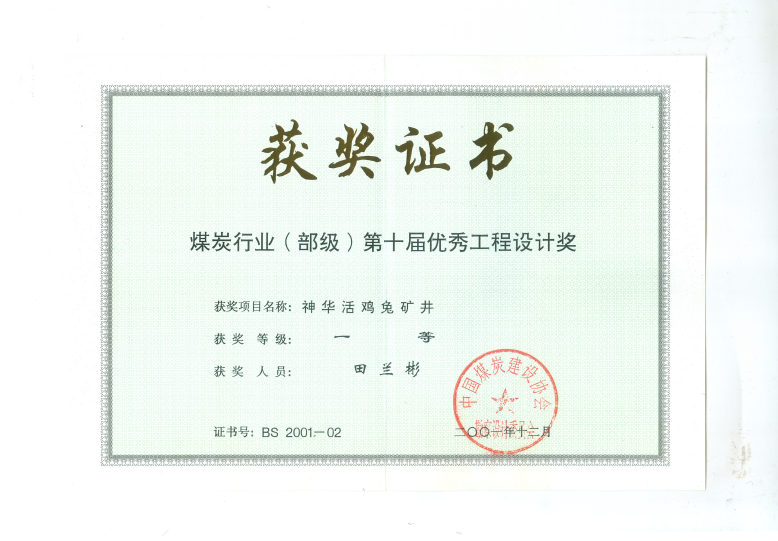 在矿井办公楼设计方面,首次提出了将矿办公楼、任务交代室、灯房、浴室、主、副井井口房、无轨胶轮车库、材料库等合建在一个综合楼内的方案,解决了用地紧张、材料、汽车等10多种不同活荷栽取值对结构计算的影响等问题。完成了国内第一座多功能现代化的矿井综合楼设计。获得煤炭行业(部级)第九届优秀工程设计一等奖。同时该工程的建成使用也为矿井被评为全国第十届优秀工程设计金奖、煤炭行业(部级)第十届优秀工程设计一等奖做作出了贡献。