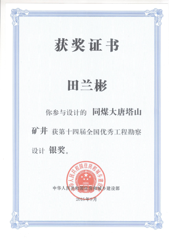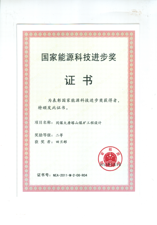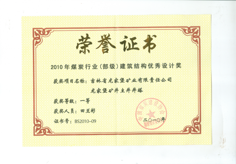 主持了国家第一个半地下井塔设计,解决了井塔地下部分与井筒及地面部分圆形与方形连接的难题,开创了国内半地下井塔设计的先河,该项目获得2010年煤炭行业(部级)建筑结构优秀设计一等奖。