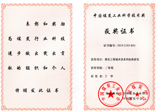 1 | 煤化工领域术语系列标准研究 | 中国煤炭工业科学技术奖 | 二等奖 | 2019 | 1 |