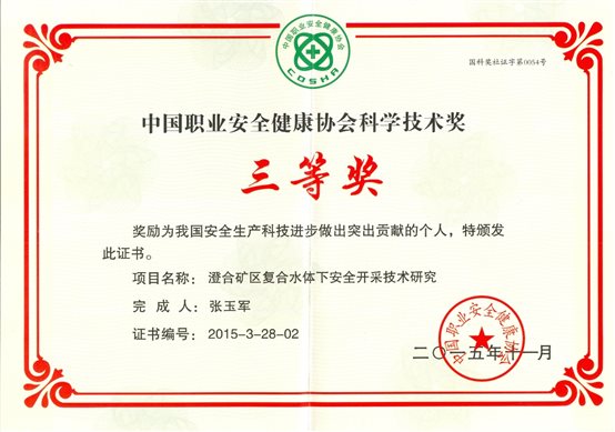 (15)张玉军,李凤明.基于煤层底板有效隔水层厚度突水危险性预测研究[M],2013 International Symposium on Coal mining and safety—Safety and high efficiency mining in coal, ST.PLUM-BLOSSOM Press, 2013.10:276-282。