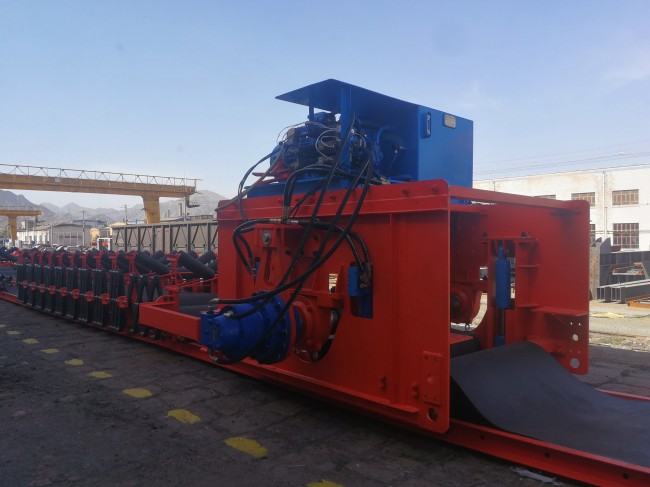 该远程控制自牵引伸缩机身装置为煤矿井下顺槽工作面和掘进工作面可伸缩带式输送机配套产品,能够与回采、迎头掘进、支护等工作协同作业。优势包括: