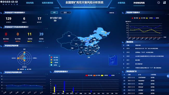 近年来,随着全国煤矿冲击地压防治监管监察工作的不断加强和持续完善,国家对煤矿行业监管监察人员及煤炭企业防治冲击地压提出了更高要求。煤科院主动走进客户需求价值链,充分发挥在冲击地压灾害防治领域的技术优势,自主研发出煤矿冲击地压事故风险动态分析评估系统,为新时代煤矿精准执法、远程监察、事故追溯备查等提供了有力的数据支撑。