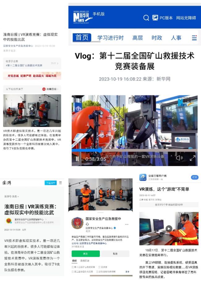 本次VR演练作为首次引入的竞赛科目,充分展现了安全生产应急救援的科学性、技术性和创新性,引发国家安全生产应急救援中心、新华网、安徽日报、淮南日报、中化新网、澎湃新闻等多家媒体争相报道。